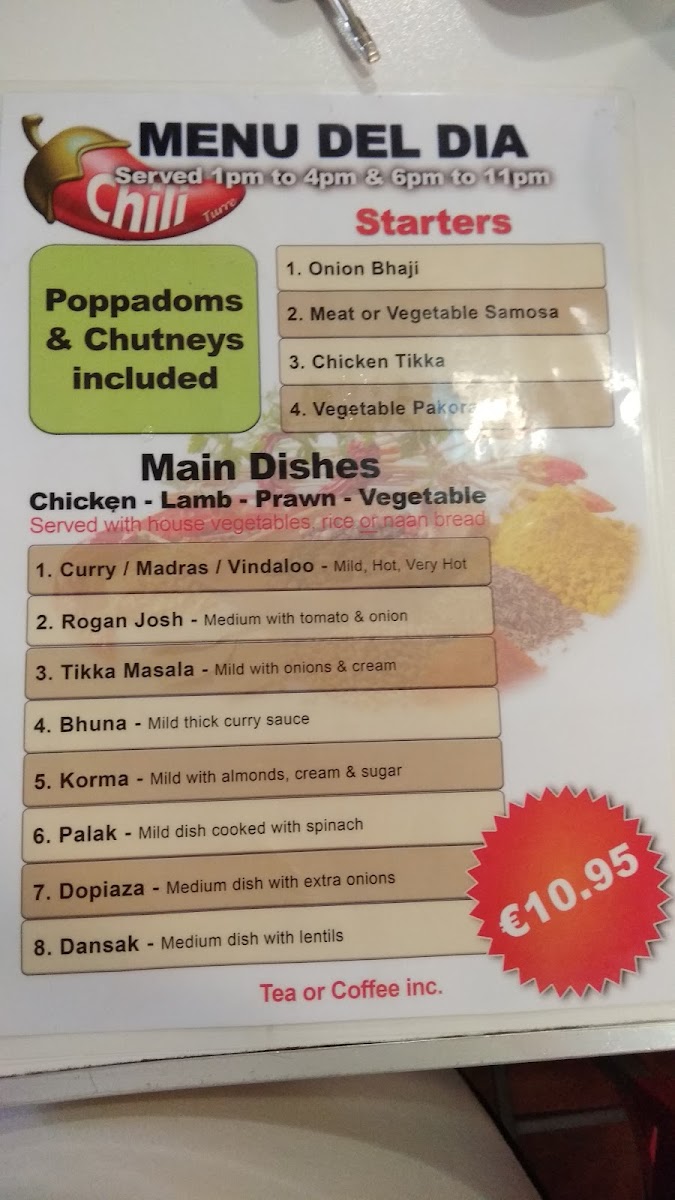 Welcome to Chili Bar, a remarkable dining destination located in the scenic Turre, Almeria, Spain. Known for its delightful blend of authentic Indian flavors, Chili Bar offers a diverse menu that highlights the best of traditional cuisine. Customers rave about the Menu del Dia, featuring delicious, freshly prepared dishes that provide excellent value.